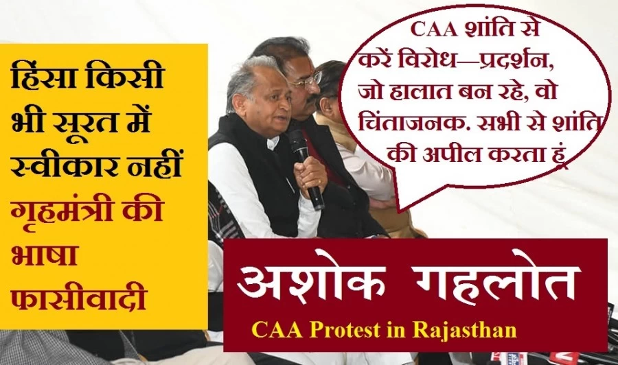 गहलोत ने कहा जिस रूप में इन्होंने सख्त विरोध के बाद भी सिटीजनशिप अमेंडमेंट एक्ट बना दिया, एनआरसी के लिए गृहमंत्री बार-बार धमकी दे रहे हैं। पिछले चार महीने से मैं सुन रहा था, जैसा कि कल मैंने कहा भी था, कि उनके टोन जो हैं वो फासिस्टी टोन हैं, और देश में थोपना चाहते हैं कि हम एनआरसी लागू करके रहेंगे तमाम मुल्क के अंदर, जो कि संभव नहीं है। उनको जानकारी है, गृह मंत्री को, 1 हजार 600 करोड़ रुपए खर्च किए गए खाली एक राज्य असम के अंदर एनआरसी लागू करने के लिए। सुप्रीम कोर्ट तक मोनिटरिंग कर रहा था। 19 लाख लोग उसके अंदर चयन किए गए एनआरसी के अंतर्गत, जिनको देश का नागरिक मानने को सरकार तैयार हुई। 16 लाख 19 लाख में से 16 लाख हिंदू थे उनमें से हैं, अब आप बताइए आपने एनआरसी के लिए इतना बड़ा प्रोसीजर किया, नोटबंदी के टाइम लोग घंटो तक लाइनों में खड़े रहे, मजदूरी छोडी नौकरी पर नहीं गए काम धंधे बंद करके, कई दिन लगाए डॉक्यूमेंट देने के लिए, लंबी परेशान करने वाली प्रक्रिया पूरी करके उन्होंने प्रयास किया, हम नागरिक हैं देश के ये सिद्ध करने के लिए तो जो लोग 19 लाख के अलावा हैं, वहां पर असम के अंदर उनकी क्या गति होगी, सदियों से रहते आ रहे हैं वहां, हमें पूरे डॉक्यूमेंट देने पड़ रहे हैं, लाइनों में लगना पड़ रहा है प्रूफ करने के लिए कि हम हिंदुस्तान के नागरिक हैं। और जो डॉक्यूमेंट नहीं दे पाए, वो 19 लाख लोग थे, 16 लाख हिंदू हैं वो। जो आंकड़े बाहर आए, आंखें खुलीं, आपके अमित शाह जी और मोदीजीकी आंखें खुलनी चाहिए थीं सबसे पहले तो, क्यों नहीं खुलीं उनकी। वहां की बीजेपी पार्टी जो है उनको भी मजबूरी में विरोध करना पड़ा। आज तमाम पॉलिटिकल पार्टी विरोध कर रही हैं, असम के अंदर लागू नहीं हो पा रहा है, जो काम सालों प्रयास करने के बाद में भी लागू नहीं हो पाया, एनआरसी असम के अंदर, वो कैसे पूरे मुल्क में लागू होगा, इसका जवाब गृह मंत्री अमित शाह जी को देना चाहिए देश को। बताओ देश को, जरूरत क्या थी ये।
