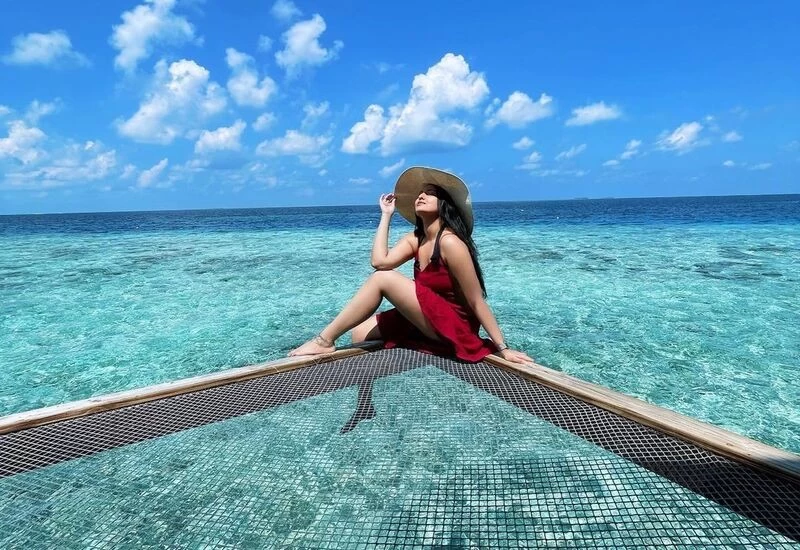 नीले समंदर के बीच आसमान को निहारती रेड आउटफिट में सोनाक्षी सिन्हा काफी अट्रैक्टिव नजर आ रही हैं। इस तस्वीर को सोशल मीडिया पर शेयर करते हुए उन्होंने कैप्शन में लिखा है, “जब भी मैं मालदीव को छोड़ती हूं तो मेरे दिल का एक टुकड़ा यहां रह जाता है, जब तक कि हम दोबारा वापस न मिल जाएं।”
