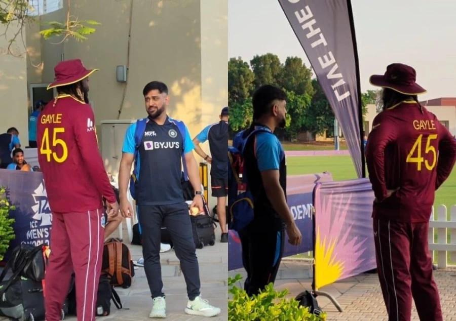 क्रिकेट: आईपीएल 2021 की समाप्ति के बाद यूएई में टी20 वर्ल्ड कप का आगाज हो चुका है। कई टीमें इस समय अपने क्वालीफायर मुकाबले खेल रही हैं तो वहीं, बड़ी टीमें वॉर्म-अप मैच खेल रही हैं। भारत ने सोमवार को खेले गए अपने पहले प्रैक्टिस मैच में इंग्लैंड को सात विकेट से धूल चटाकर धमाकेदार अंदाज में अपने मिशन की शुरुआत की। भारत के अलावा वेस्टइंडीज ने भी पाकिस्तान के खिलाफ अपना वॉर्म-अप मैच खेला, जिसमें कैरेबियाई टीम को सात विकेट से शिकस्त खानी पड़ी। ये दोनों ही मुकाबले एक ही मैदान पर थे और इस दौरान भारत और वेस्टइंडीज के खिलाड़ियों का मिलना स्वभाविक था। इस दौरान 'यूनिवर्स बॉस' के नाम से मशहूर वेस्टइंडीज के दिग्गज सलामी बल्लेबाज क्रिस गेल ने भारतीय टीम के मेंटॉर और 'कैप्टन कूल' के नाम से मशहूर महेंद्र सिंह धोनी से मुलाकात की।
