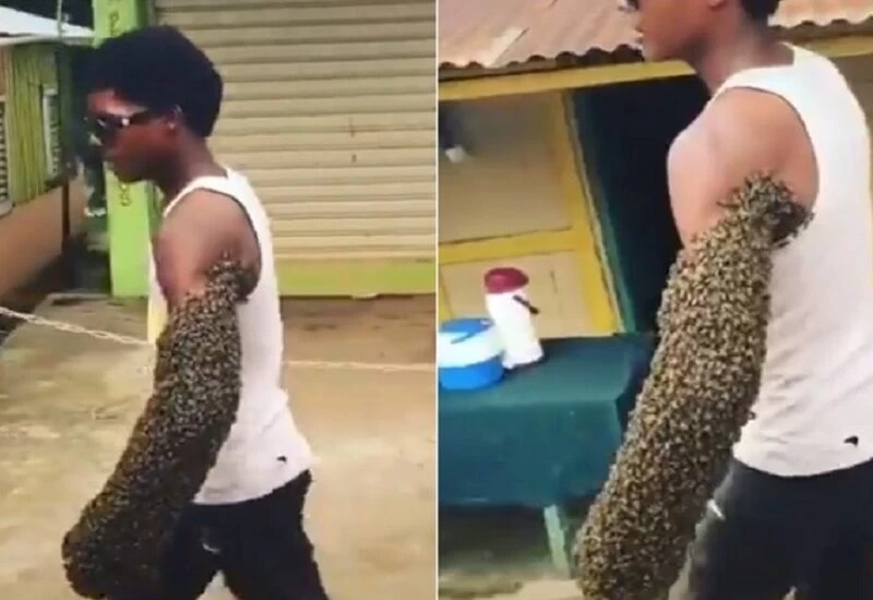 मधुमक्खियों ने लड़के के हाथ पर छत्ता बनाया