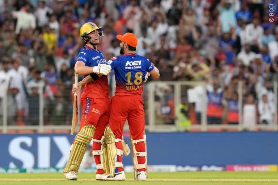 इससे पहले, अहमदाबाद के नरेंद्र मोदी स्टेडियम में RCB ने टॉस जीतकर फील्डिंग चुनी। गुजरात ने 20 ओवर में 3 विकेट खोकर 200 रन बनाए। साई सुदर्शन ने नाबाद 84 रन की पारी खेली। वहीं, शाहरुख खान (58 रन) ने अर्धशतक जमाया। डेविड मिलर ने 26 रन का योगदान दिया। RCB की ओर से मोहम्मद सिराज, ग्लेन मैक्सवेल और स्वप्निल सिंह को 1-1 विकेट मिला।