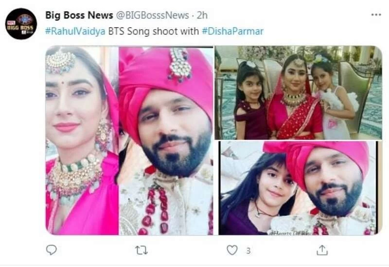 दरअसल राहुल वैद्य और दिशा परमार की शादी के जोड़े में फोटोज सोशल मीडिया पर वायरल हो रही हैं। वहीं इन फोटोज के वायरल होते ही ये कयास लगाया जा रहा है कि दोनों ने चोरी-चुपके शादी रचा ली है, लेकिन सच्चाई ये नहीं है। दिशा और राहुल एक साथ एक म्यूजिक वीडियो में आने वाले हैं, उसी की शूटिंग के समय ली गई फोटोज तहलका मचा रही है। एक गाने में दोनों दूल्हा-दुल्हन बने नजर आने वाले हैं। इन फोटो में दुल्हन बनीं दिशा बेहद खूबसूरत दिख रही हैं तो वहीं राहुल भी दूल्हे के लिबास में जंच रहे हैं। राहुल और दिशा के इस फोटोशूट पर फैंस जमकर अपना प्यार जता रहे हैं।