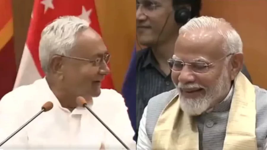 Nalanda University: प्रधान मंत्री नरेंद्र मोदी ने नालन्दा यूनिवर्सिटी के नए भवन का आज उद्घाटन किया। इस अवसर पर बिहार के मुख्यमंत्री नीतीश कुमार ने मंच से ऐसी बात कह दी जिसे सुनकर प्रधानमंत्री नरेंद्र मोदी अभी अपनी हंसी नहीं रोक पाए। नीतीश ने कहा कि अभी कुछ दिन पहले जब यह खबर आई कि आप आ रहे हैं उद्घाटन करने तो हमलोगों को बहुत अच्छा लगा। इसके बाद उन्होंने हंसते हुए कहा कि तीसरी बार भी आप है ही (केंद्र में तीसरी बार सत्ता में आने पर)...फिर आप आ रहे हैं तो हमें बहुत अच्छा लगा। नीतीश ने जैसे ही पीएम मोदी के तीसरी बार का उल्लेख किया तो प्रधानमंत्री नरेंद्र मोदी अपनी हंसी नहीं रोक पाए।