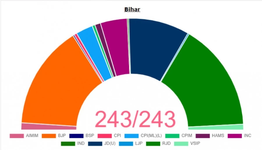 नई दिल्ली | विधानसभा बिहार का चुनाव परिणाम पूरे भारत की नजरों का तारा बना हुआ है। कौन यहां साफ तौर पर बाजी मारेगा, यह सवाल उस हर किसी के मन में है जो सियासत की गणित का पहला अक्षर भी जानता है। बिहार विधानसभा चुनाव के मतों की गिनती के ताजा आंकड़ों के अनुसार सत्तारूढ़ राष्ट्रीय जनतांत्रिक गठबंधन (राजग) विपक्षी महागठबंधन पर बढ़त बनाये हुए है। बिहार में विधानसभा चुनाव के लिये मतों की गणना बेहद धीमी रफ्तार से चल रही है। चुनाव आयोग के अधिकारियों ने बताया कि बिहार में कुल 7.3 करोड़ मतदाताओं में से 57.09 प्रतिशत ने अपने मताधिकार का प्रयोग किया था और निर्वाचन आयोग ने मंगलवार को कहा कि बिहार में शाम 5.30 बजे तक 2.7 करोड़ मतों की गिनती कर ली गई। राज्य विधानसभा चुनाव में चार करोड़ से अधिक लोगों ने मतदान किया था। बहरहाल, कई सीटें ऐसी हैं जहां बढ़त का अंतर 1,000 मतों से कम है, ऐसे में परिणाम किसी के भी पक्ष में जा सकता है।