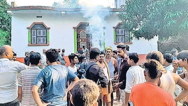 आक्रोशित परिजनों ने युवती के दरवाजे पर जलाया युवक का शव
