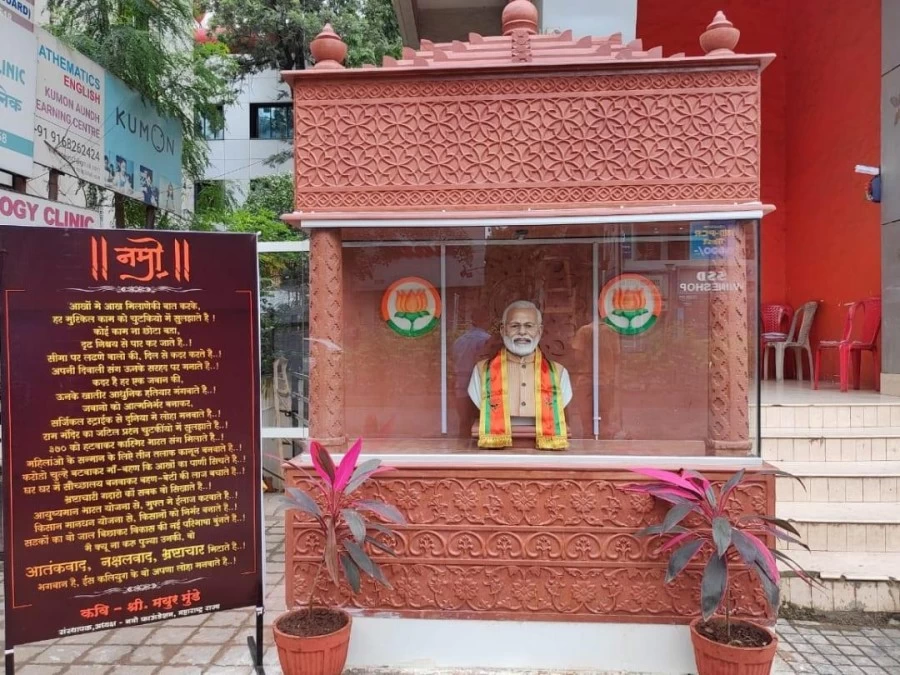 पुणे: भारतीय जनता पार्टी के एक कार्यकर्ता ने यहां प्रधानमंत्री नरेंद्र मोदी का मंदिर स्थापित किया है जिसके अंदर उनकी मूर्ति लगाई गई है। मयूर मुंडे (37) नामक कार्यकर्ता ने कहा कि प्रधानमंत्री ने “अयोध्या में राम मंदिर बनवाया” इसलिए मोदी के सम्मान में उन्होंने यह मंदिर बनवाया है। यह मंदिर पुणे के औंध इलाके में स्थित है।