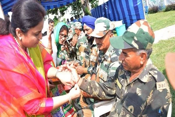 भाजपा 'महिला मोर्चा' की अध्यक्ष संजीता डोगरा ने 15 सदस्यों के साथ यहां बीएसएफ मुख्यालय का दौरा किया और जवानों को अपने माथे पर 'तिलक' लगाकर और कमांडेंट मेडिकल, बीएसएफ जम्मू की मौजूदगी में 'राखियां' बांधकर मांगा। प्रेशर प्रोफेशनल करनाल सिंह ने कहा।