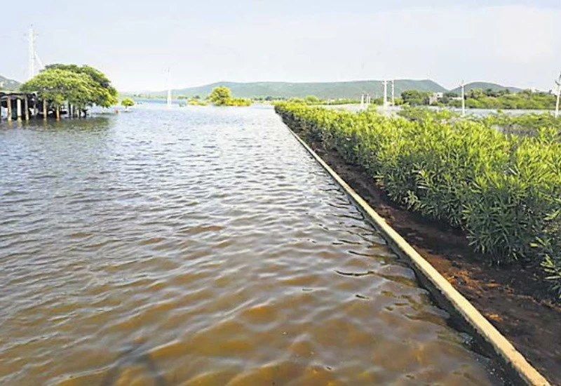 तालाबगांव के पास फूलसागर तालाब के पेटे में बने नेशनल हाईवे पर 35 दिन से भरे पानी में नावें चल रही हैं। हाईवे से 200 मीटर दूर बसे परिवारों को घर से निकलने के लिए नावों का सहारा लेना पड़ रहा है। गांव के उपसरपंच कयामुद्दीन, मोहम्मद इदरिश, मोहम्मद इस्लाम, उमरद्दीन, शरीफ मोहम्मद ने बताया कि 16 अगस्त से पानी भर चुका था। जयपुर से नाव बनवाई गई।