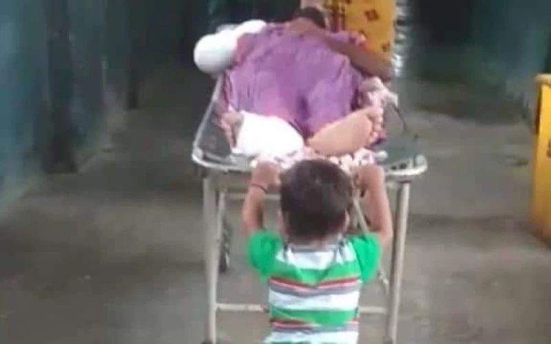 देवरिया के बरहज क्षेत्र के गौरा गांव निवासी छेदी यादव पिछले दिनों मारपीट की एक घटना में घायल हो गए थे। उन्हें देवरिया जिला अस्पताल के सर्जिकल वार्ड में भर्ती कराया गया। छेदी यादव की बेटी बिन्दू ने बताया कि तीन-चार दिन से वह अपने पिता के साथ जिला अस्पताल में हैं। यहां उन्हें ड्रेसिंग के लिए बीच-बीच में ड्रेसिंग रूम में ले जाना होता है। बिंदू देवी ने बताया कि अस्पताल के कर्मचारी हर बार स्ट्रेचर के लिए 30 रुपए की मांग करते हैं। परिवार की स्थिति बार-बार इतने रुपए देने की नहीं थी सो उन्होंने मना कर दिया। इस पर अस्पताल कर्मियों ने छेदी यादव को ड्रेसिंग के लिए ले जाने से मना कर दिया। उन्होंने कहा कि यदि 30 रुपए नहीं देने हैं तो मरीज को खुद ही ड्रेसिंग रूम ले जाना होगा। तब बिंदू देवी अपने छह साल के बच्चे शिवम यादव की मदद से पिता को ड्रेसिंग रूम तक ले गईं। इसी दौरान किसी ने वीडियो बनाकर वीडियो सोशल मीडिया में वायरल कर दिया।