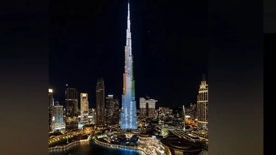Dubai's Burj Khalifa lit up with the words 'Guest of Honor-Republic of India' ahead of PM Modi's address to the World Government Summit pic.twitter.com/GLxj1suFBH