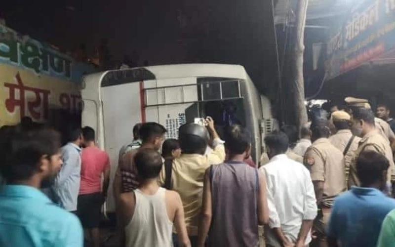 मिली जानकारी के अनुसार बुधवार रात करीब 9.30 बजे ग्रेटर नोएडा से निजी कंपनी का स्टाफ लेकर लाल कुंआ से घंटाघर कोतवाली की तरफ जा रही थी। बस जैसी ही भाटिया मोड़ फ्लाईओवर के ऊपर पहुंचीं तभी बस का टायर फट गया। इससे अनियंत्रित हुई बस ने एक बाइक सवार युवक में टक्कर मार दी। इसके बाद बस घिसटते हुए फ्लाईओवर का डिवाइडर क्रास कर दूसरी सड़क की रैलिंग तोड़ कर नीचे जा गिरी। फ्लाईओवर के नीचे दुकानें लगी होने के कारण वहां लोगों की काफी भीड़ थी, जिसपर बस जाकर गिर गई।
