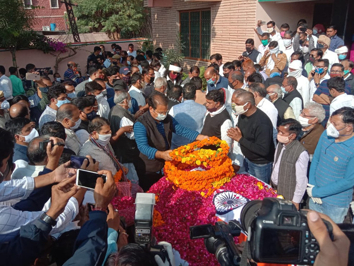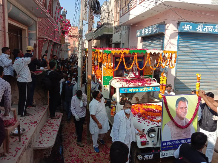 राजस्थान में गहलोत सरकार में कैबिनेट मंत्री मास्टर भंवरलाल मेघवाल पंचतत्व में विलीन हो गए। बेटे मनोज ने उन्हें मुखाग्नि दी। गृहनगर चूरू के सुजानगढ़ में उनका अंतिम संस्कार किया गया। इससे पहले उनकी पार्थिव देह को अंतिम दर्शन के लिए उनके निवास पर रखी गई। जहां गहलोत सरकार में मंत्री प्रताप सिंह खाचरियावास, रघु शर्मा, गोविंद सिंह डोटासरा समेत कांग्रेस के कई दिग्गज नेताओं ने पहुंच अंतिम नमन किया। इसके अलावा, भाजपा उप नेता प्रतिपक्ष राजेंद्र राठौड़, युनुस खान समेत विपक्ष के कई नेता भी मास्टर भंवरलाल के अंतिम दर्शन के लिए पहुंचे।