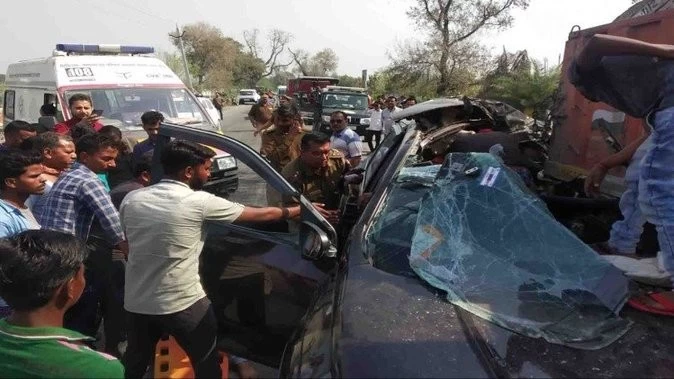 यूपी के बांदा जिले में शनिवार को भीषण सड़क हादसा हुआ। नेशनल हाईवे पर खड़े ट्रक में तेज रफ्तार कार पीछे से टकरा गई। हादसे में कार सवार चार लोगों की मौत हो गई। जबकि दो लोग गंभीर रूप से घायल हो गए।