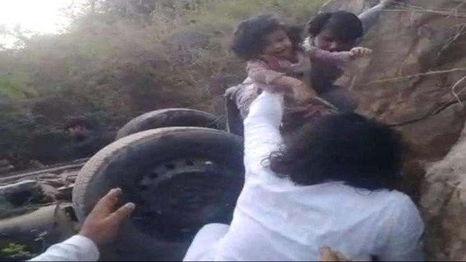 मौके पर मौजूद लोगों ने बताया कि हादसे में जख्मी मां अलमस कार से बाहर निकलने के बाद अपनी बेटी को सुरक्षित देखकर उससे लिपटकर बिलख पड़ी। उन्होंने बताया कि देर शाम जियारत कर लौट रहे गुजरात के जायरीन परिवार की कार अचानक धमाके के साथ पहाड़ी से नीचे गिरी। वे स्मारक के पास बैठे थे। उन्हें तेज आवाज और धूल का गुबार नजर आया। दौड़कर पहुंचे तो देखा दुर्गम मोड़ से एक कार करीब 50 फीट नीचे गिरी हुई थी। कार में फंसे जायरीन को निकालने के बाद अस्पताल पहुंचाया।
