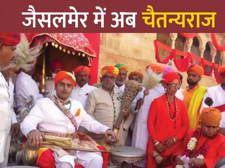 नए महारावल चैतन्यराज सिंह के राजतिलक की तैयारियां कई दिनों से जैसलमेर में जारी थी। आज एक खुली जीप में चैतन्यराज सिंह को अपने निवास स्थान जवाहिर पैलेस से फोर्ट लाया गया। भगवा वस्त्र धारण किए चैतन्यराज पर पूरे रास्ते लोगों ने फूलों की बारिश कर जयकारे लगाते हुए उनका स्वागत किया।