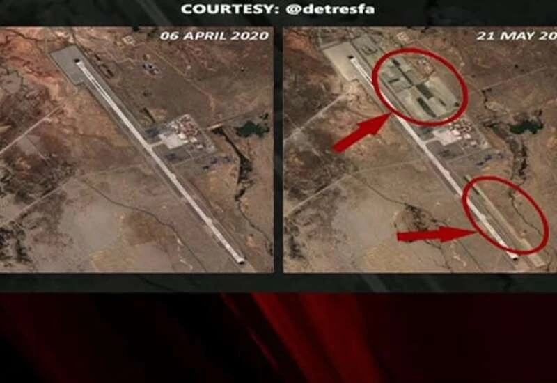 6 अप्रैल 2020 की सैटेलाइट तस्वीर में इस एयरपोर्ट और रनवे को देखा जा सकता है। लेकिन 21 मई 2020 की तस्वीरों में काफी कुछ बदला हुआ देखा जा सकता है। नई तस्वीर में बड़े पैमाने पर एयरबेस के निर्माण की गतिविधियां दिखाई दे रही हैं।