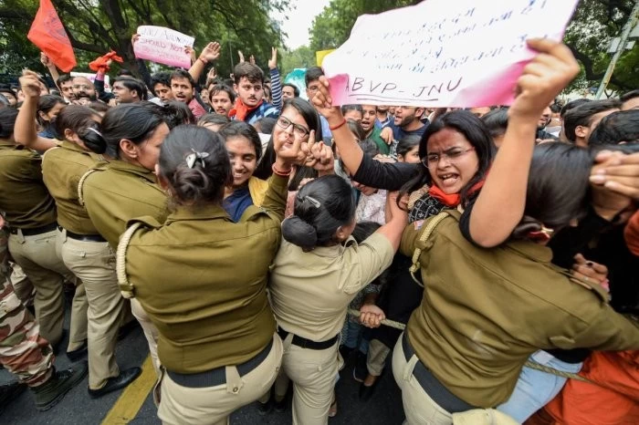 #WATCH: Police resorted to lathicharge after a clash with protesting Jawaharlal Nehru University (JNU) students, who were marching towards Rashtrapati Bhawan to meet President over fee hike issue. pic.twitter.com/sAbuN05n2q