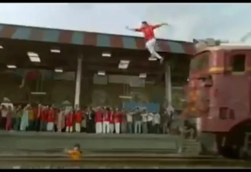 वायरल हुई इस छोटी से क्लिप में मुख्य भूमिका निभा रहे एक्टर तेज गति से चल रही ट्रेन के ऊपर दौड़ रहा है और ट्रेन से कूदकर उसके आगे खड़े एक बच्चा को बचाता है।