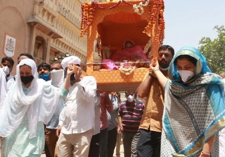 बीकानेर । बीकानेर रियासत की पूर्व महारानी पद्मा कुमारी की अंतिम यात्रा मंगलवार को जूनागढ़ से निकली। बीकानेर पूर्व की विधायक एवं राजकुमारी सिद्धि कुमारी समेत उनकी बेटियों ने उन्हें कंधा दिया। बीकानेर में पूर्व महारानी के निधन से शोक की लहर छा गई। उनका राज परिवार के कायदों के अनुसार अंतिम संस्कार किया गया।