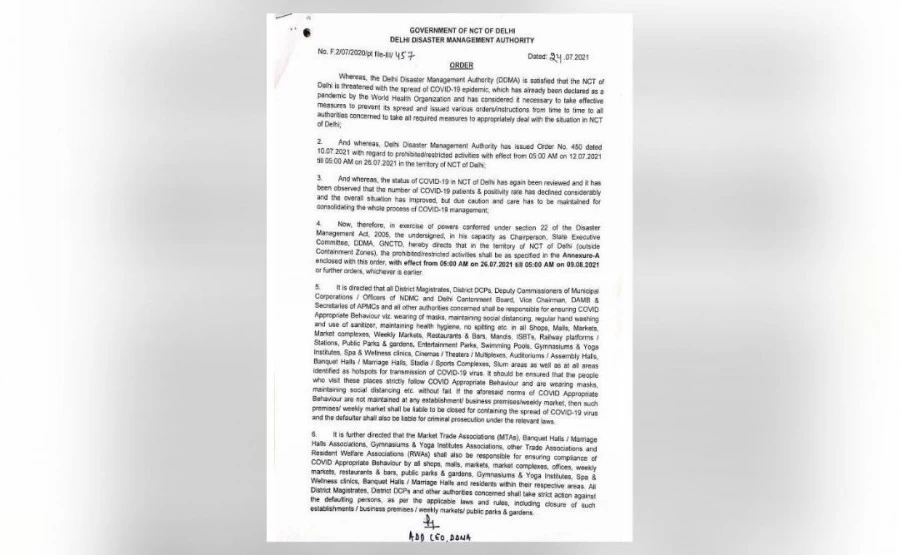 आदेश में कहा गया है कि अब दिल्ली में उन सभी एक्टिविटीज को खोलने की इजाज़त होगी जिन्हें खासतौर पर प्रतिबंधित नहीं किया गया है. हालांकि कंटेन्मेंट ज़ोन में सिर्फ आवश्यक सेवाओं वाली गतिविधियों की ही अनुमति होगी.