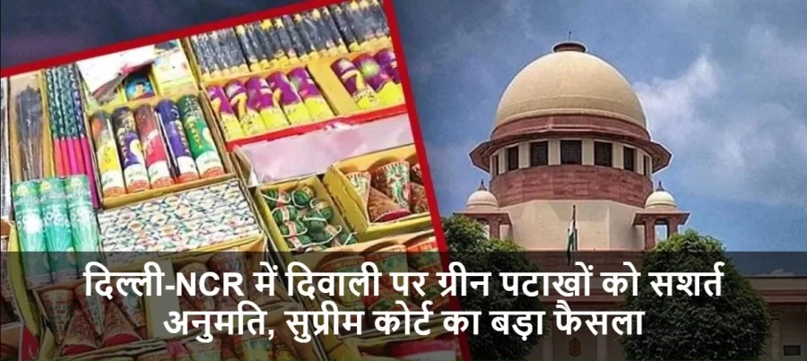 दिवाली से पहले सुप्रीम कोर्ट ने दिल्ली-NCR के निवासियों को बड़ी राहत दी है. कोर्ट ने कुछ शर्तों के साथ ग्रीन पटाखे जलाने की अनुमति प्रदान की है. यह इजाजत केवल 18 से 21 अक्टूबर तक के लिए मान्य होगी और आदेश सुनाते हुए भारत के मुख्य न्यायाधीश (CJI) ने कहा कि पर्यावरण के साथ किसी भी तरह का समझौता किए बिना संयम के साथ अनुमति देनी होगी.