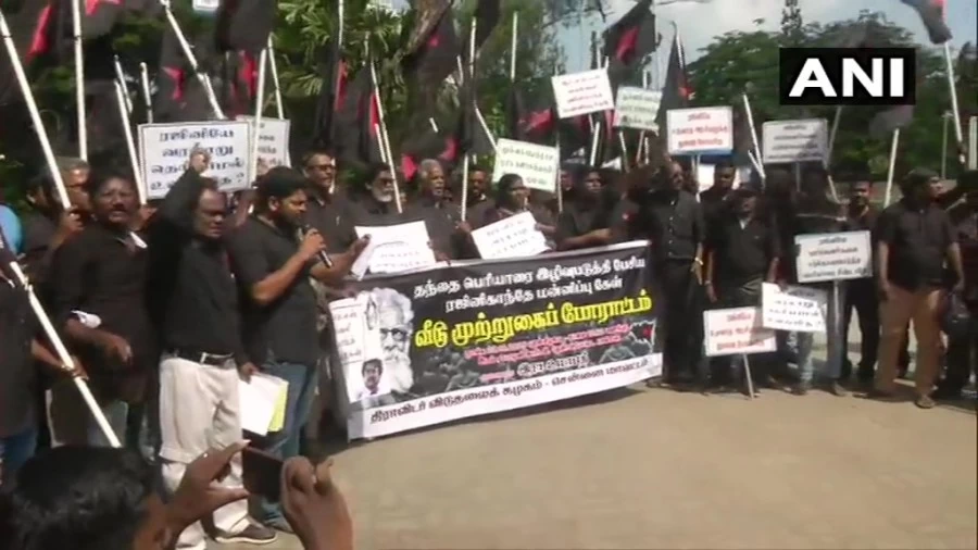 ईवी रामासामी पेरियार पर की गई कथित टिप्पणी को लेकर तमिल सुपरस्टार रजनीकांत के घर के बाहर थनथाई पेरियार द्रविदर कझगम के कार्यकर्ता प्रदर्शन कर रहे हैं। इसे देखते हुए रजनीकांत के निवास के पास पुलिस तैनात की गई।गौरतलब हो कि मंगलवार को भी रजनीकांत के घर के बाहर थनथाई पेरियार द्रविदर कझगम के कार्यकर्ताओं ने प्रदर्शन किया। वहीं, पेरियार पर की गई टिप्पणी को लेकर रजनीकांत ने कहा कि मैंने यह बातें खुद ही नहीं कहीं, ये मीडिया में भी प्रकाशित हुई हैं, मैं उन्हें दिखा सकता हूं। मैं इसके लिए माफी नहीं मांगूंगा।