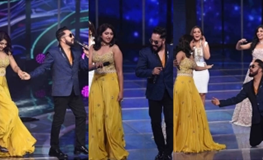 Entertainment | मशहूर गायक मीका सिंह (Mika Singh) ने गायिका भूमि त्रिवेदी (Bhumi Trivedi) को प्रपोज किया है और वह भी नेशनल टेलीविजन पर। म्यूजिक रिएलिटी शो 'इंडियन प्रो म्यूजिक लीग' (Indian Pro Music League) (IPML) के आगामी एपिसोड में पंजाब लायंस की तिकड़ी मीका सिंह, असीस कौर और रूपाली जग्गा ने साजिद-वाजिद के लोकप्रिय गाने 'मुझसे शादी करोगी' पर परफॉर्म किया। इस दौरान मीका ने कुछ ऐसा काम कर दिया कि ये वीडियो अब सोशल मीडिया पर धूम मचा रहा है।
