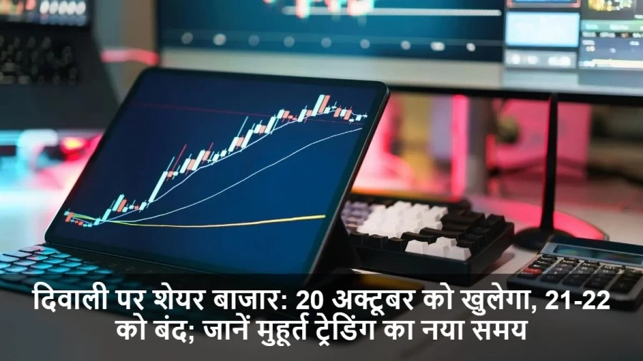 इस दिवाली, शेयर बाजार का शेड्यूल बदल गया है। 20 अक्टूबर को बाजार खुले रहेंगे, जबकि 21 और 22 अक्टूबर को छुट्टी रहेगी। मुहूर्त ट्रेडिंग 21 अक्टूबर को दोपहर 1:45 से 2:45 बजे तक होगी, जो निवेशकों के लिए शुभ मानी जाती है।