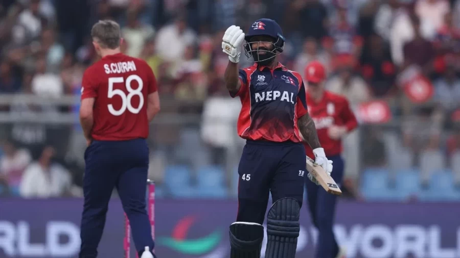185 रनों के लक्ष्य का पीछा करने उतरी नेपाल की टीम ने सकारात्मक शुरुआत की। सलामी बल्लेबाज कुशल भुर्तेल ने 29 रनों का योगदान दिया, जबकि दीपेंद्र सिंह ऐरी ने बल्ले से भी जौहर दिखाते हुए 44 रनों की महत्वपूर्ण पारी खेली। कप्तान रोहित पौडेल ने 39 रन बनाकर जीत की उम्मीदों को जीवंत रखा। मैच के अंतिम ओवरों में लोकेश बाम ने विध्वंसक बल्लेबाजी का प्रदर्शन किया। उन्होंने मात्र 20 गेंदों पर नाबाद 39 रन ठोककर इंग्लैंड के खेमे में खलबली मचा दी। नेपाल को अंतिम 3 ओवरों में 48 रनों की आवश्यकता थी, जिसे लोकेश ने अपनी बल्लेबाजी से लगभग मुमकिन बना दिया था।