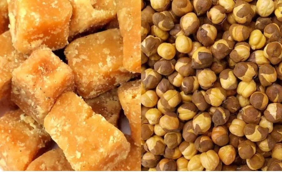 Benefits of eating Roasted Chana with jaggery: मौजूदा दौर में लोगों की बैड फूड हैबिट्स उनकी अधिकतर बीमारियों की वजह है. आजकल की खराब जीवनशैली उन बीमारियों को बढ़ाने काम करती है. अगर आप खुद को फिट रखना चाहते हैं तो जरूरी है कि आपकी डाइट और लाइफस्टाइल काफी बेहतर हो. वेस्टर्न फूड्स की वजह से लोग तरह-तरह की बीमारियों के शिकार हो रहे हैं क्योंकि इनमें पोषक तत्वों की कमी होती है. आपको बता दें कि कई लोगों में खून की काफी कमी देखने को मिल रही है. इसके इलाज के लिए वो तरह तरह की दवाईयां लेते हैं लेकिन आपके घर के किचन में रखी दो चीजें खून की कमी दूर कर सकती हैं.