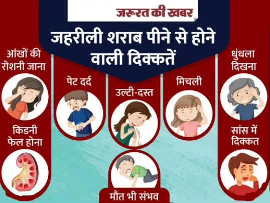 - जहरीली शराब आंख और ब्रेन को सबसे पहले प्रभावित करती है, फिर दूसरे ऑर्गन डैमेज हो जाते हैं