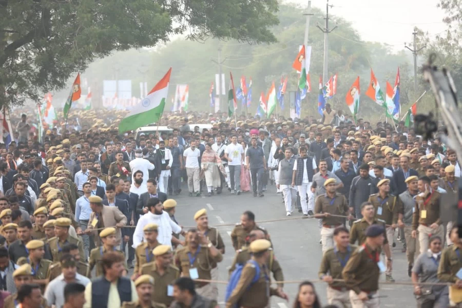 - राहुल गांधी राजस्थान में यात्रा के पहले दिन 34 किलोमीटर का सफर तय करेंगे। अब तक भारत जोड़ो यात्रा में औसतन रोज 24 किलोमीटर का सफर तय होता है, लेकिन राजस्थान में अब स्पीड बढ़ाई जा रही है। यात्रा में कांग्रेस के सभी खेमे एक साथ दिखे। गहलोत-पायलट, दोनों के समर्थकों ने यात्रा में भाग ले रहे हैं।