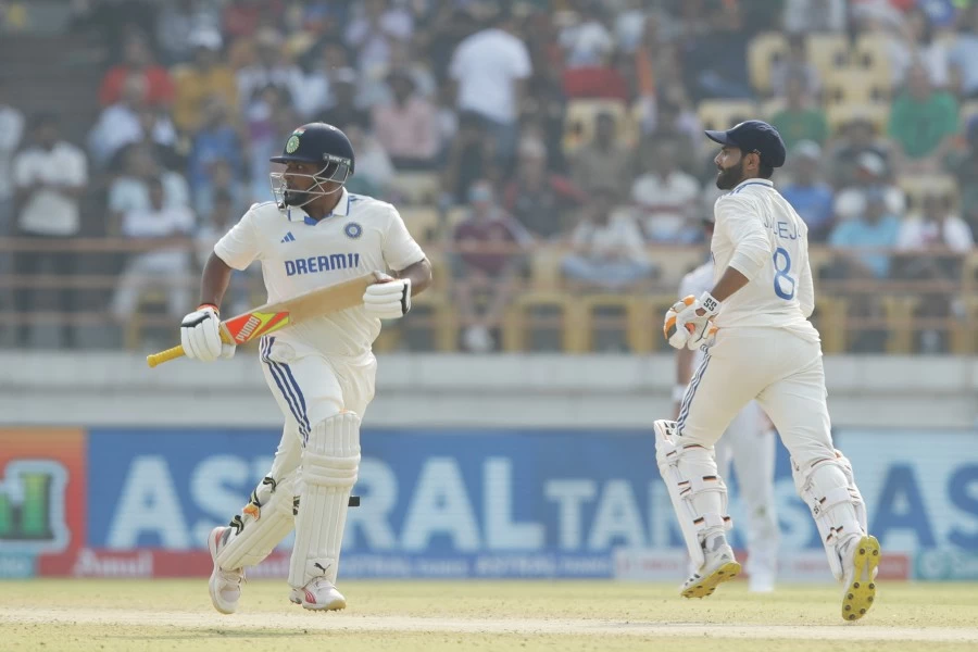 भारतीय टीम की शुरुआत खराब रही थी। 33 रन पर टीम इंडिया ने तीन विकेट गंवा दिए थे। यशस्वी जायसवाल 10 रन बनाकर आउट हुए, शुभमन गिल खाता नहीं खोल सके, जबकि रजत पाटीदार पांच रन बना सके। इसके बाद रोहित शर्मा और जडेजा ने 204 रन की साझेदारी निभाई। रोहित ने टेस्ट करियर का 11वां शतक लगाया। वह 131 रन बनाकर पवेलियन लौटे। इस साझेदारी को वुड ने तोड़ा। उन्होंने रोहित को आउट किया। रोहित के आउट होने पर डेब्यू करने वाले सरफराज खान क्रीज पर आए।