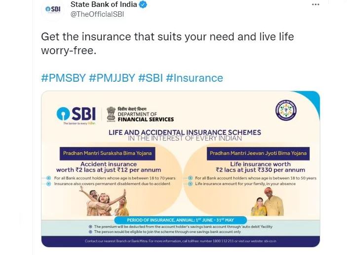 प्रधानमंत्री सुरक्षा बीमा योजनाप्रधानमंत्री सुरक्षा बीमा योजना (Pradhan Mantri Suraksha Bima Yojana-PMSBY) योजना काफी कम प्रीमियम में जीवन बीमा प्रदान करती है. बता दें कि केंद्र सरकार की तरफ से PMSBY एक ऐसी स्कीम है, जिसके तहत सिर्फ 12 रुपये में खाताधारक को 2 लाख रुपये का इंश्योरेंस कवर मिलता है.अटल पेंशन योजना