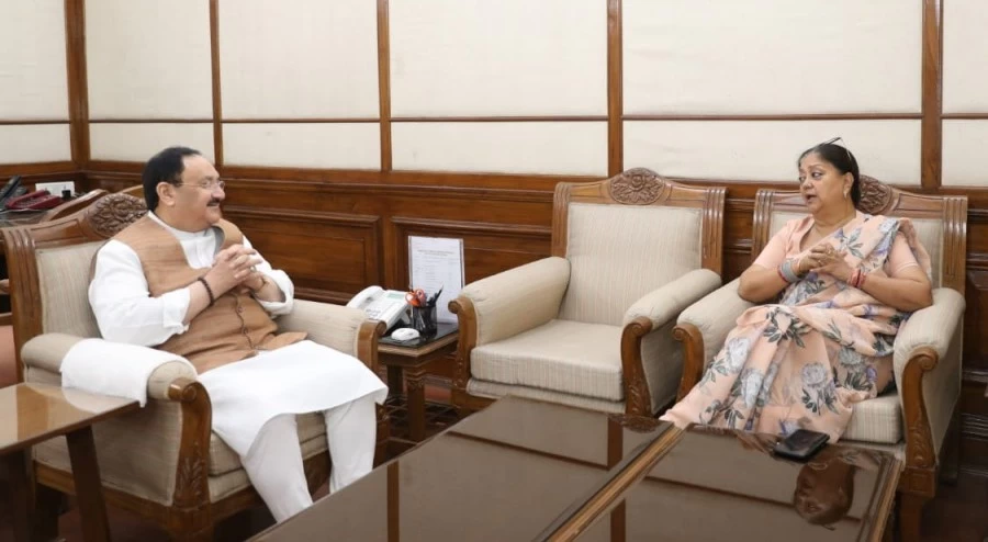 पूर्व CM वसुंधरा राजे के दिल्ली दौरे से यहां राजस्थान में सियासी हलचल तेज हो गई है। वह लगातार पार्टी के बड़े व केंद्रीय नेताओं से मुलाकात कर रही हैं। इसी क्रम में उन्होंने मंगलवार को संसद भवन में राजे ने बीजेपी के राष्ट्रीय अध्यक्ष जेपी नड्डा से लंबी मुलाकात की। आधिकारिक रूप से राजे ने इसे शिष्टाचार मुलाकात बताया है। राजे ने नड्डा को चार राज्यों में हुई बीजेपी की जीत पर बधाई देने और आने वाले समय में जिन राज्यों में चुनाव होने वाले हैं, उनमें जीत की अग्रिम शुभकामनाएं देने की बात कही है। जानकार इस मुलाकात के सियासी मायने निकाले रहे हैं।