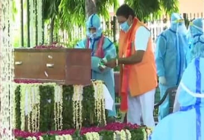 नई दिल्ली। भारत के पूर्व राष्ट्रपति प्रणब मुखर्जी का मंगलवार दोपहर राजकीय सम्मान के साथ अंतिम संस्कार कर दिया गया। पूर्व राष्ट्रपति को लोधी श्मशान घाट में अंतिम विदाई दी गई। बेटे अभिजीत मुखर्जी के पिता को मुखाग्नि देने के साथ ही पूर्व राष्ट्रपति प्रणब मुखर्जी पंचतत्व में विलीन हो गए। इससे पहले उनके पार्थिव शरीर को 10, राजाजी मार्ग स्थित उनके सरकारी आवास पर लाया गया, जहां राष्ट्रपति रामनाथ कोविंद, उपराष्ट्रपति वेंकैया नायडू, प्रधानमंत्री नरेंद्र मोदी, रक्षा मंत्री राजनाथ सिंह और पूर्व प्रधानमंत्री मनमोहन सिंह समेत कई नेताओं ने उनके पार्थिव शरीर के अंतिम दर्शन किए और उन्हें श्रद्धांजलि अर्पित की।