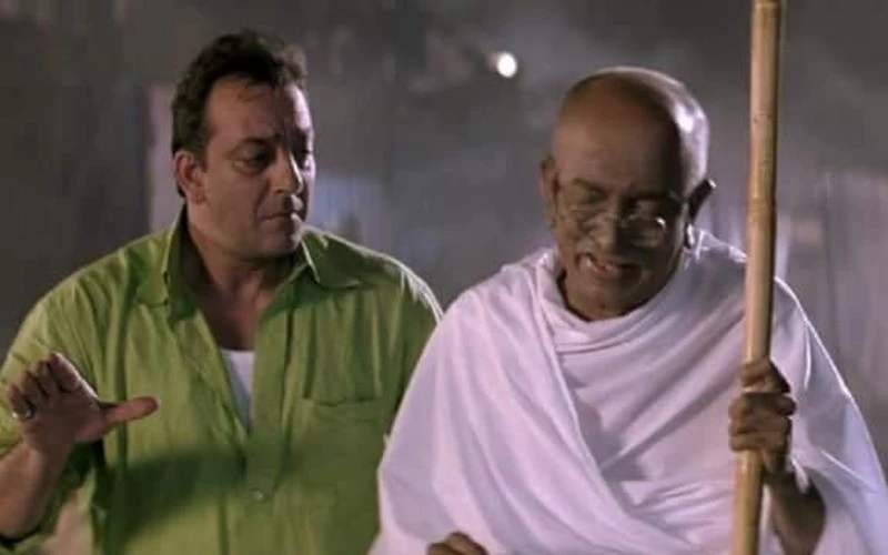 फिल्म 'लगे रहो मुन्ना भाई' का जो सीन संजय दत्त ने शेयर किया है इसमें एक सिक्योरिटी गार्ड संजू बाबा को थप्पड़ मार देता है। इस पर सर्किट तुरंत गुस्से में उस गार्ड की तरफ बढ़ता है लेकिन संजय दत्त उसे रोक देते हैं। संजय दत्त बापू की सीख को याद करते हुए कहते हैं कि जब कोई एक गाल पर थप्पड़ मारे तो उसकी तरफ दूसरा गाल बढ़ा देना चाहिए।