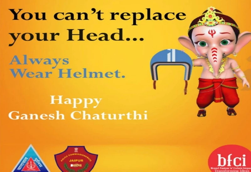 इसी कड़ी में गणेश चतुर्थी के अवसर पर यातायात पुलिस के द्वारा सोशल मीडिया के लिए एक मीम पोस्ट तैयार की गई है। जिसमें भगवान श्री गणेश सड़क सुरक्षा जीवन रक्षा का संदेश दे रहे है। इस पोस्ट में बाल स्वरूप भगवान गणेश के हाथ में एक हेलमेट है। जिसमें वह संदेश दे रहे है कि you cant replace your head, always wear helmet (आप अपना सिर नहीं बदल सकते है, इसलिए हमेशा हेलमेट पहने), हैप्पी गणेश चतुर्थी।