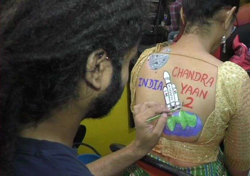 सूरत में महिलाएं अपनी पीठ पर चंद्रयान-2 का टैटू बनवाती दिखीं.