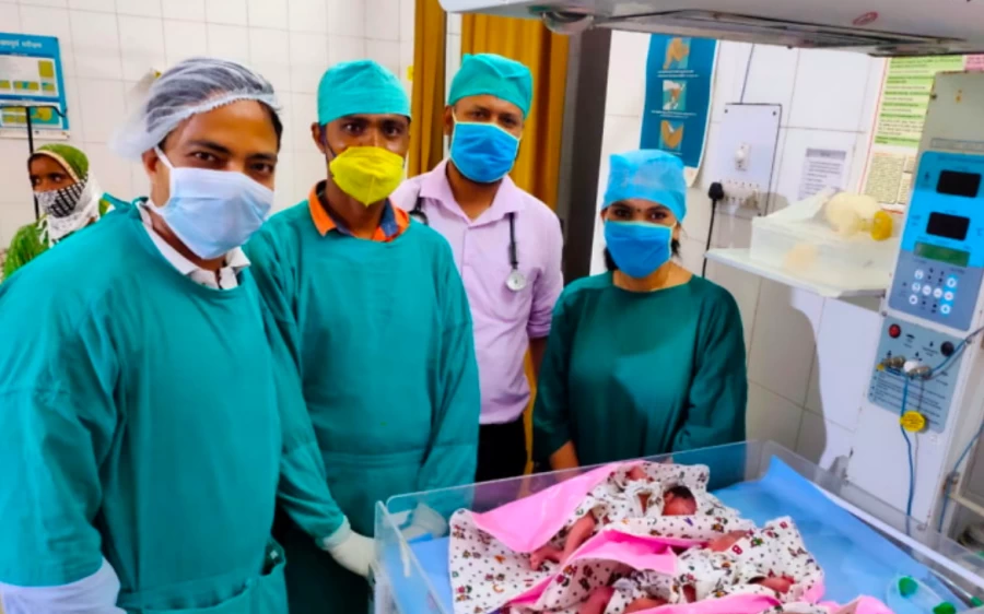 महिला रोग विशेषज्ञ डॉ. सुरेन्द्र यादव ने बताया कि भीण्डर क्षेत्र के नयातालाब (कुंथवास) निवासी गोपीबाई (24) पत्नी केशुलाल मीणा मंगलवार सुबह चिकित्सालय में भर्ती हुई। डॉक्टर्स ने सुबह 8.55 बजे पहली बच्ची का जन्म करवाया। दूसरी बच्ची का जन्म 9.20 बजे हुआ। तीसरी बच्ची का जन्म 9.25 बजे हुआ। इसके बाद तीनों बच्चियों का वजन किया गया। इसमें पहली बच्ची का 1.5 किलोग्राम, दूसरी बच्ची का 1.4 किलोग्राम और तीसरी बच्ची का 1.3 किलोग्राम है। तीनों बच्चियों को डॉक्टर्स की टीम की देखरेख में रखा गया है। चिकित्सा टीम में डॉ. सुरेन्द्र यादव के अलावा नर्सिंग कर्मी बीना भट्ट, राजमल कटारा, अरविंद व्यास आदि थे।