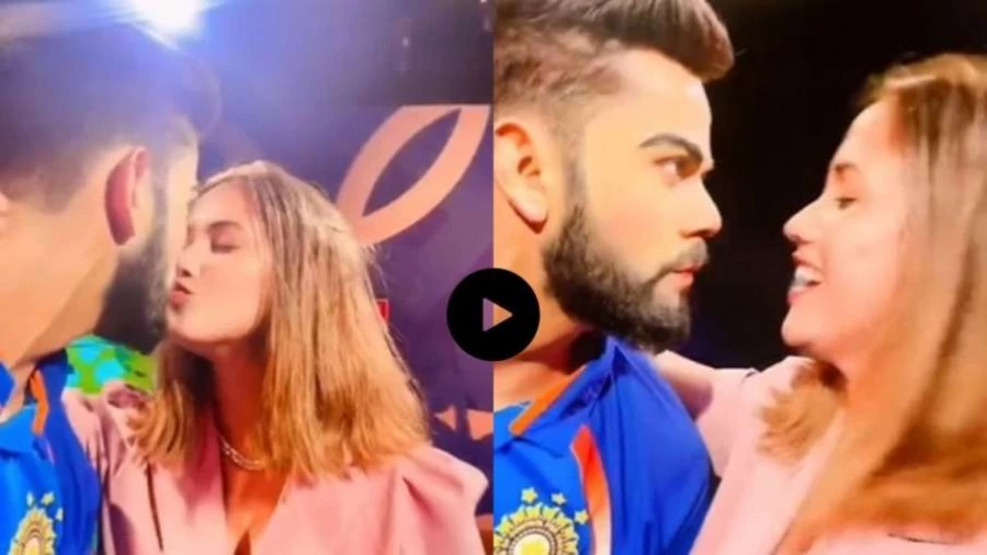 Virat Kohli Kiss Video: 'Virat Kohli' की फैन फॉलोइंग की तो कोई तोड़ ही नहीं है। सिर्फ भारत में ही नहीं विराट कोहली को पूरी दुनिया में लोग बहुत प्यार करते हैं। विराट क्रिकेट की दुनिया के दिग्गज खिलाड़ीयों में से एक हैं। लड़कियां जितना उनके खेल को पसंद करती हैं उससे कहीं ज्यादा वह उनकी चार्मिंग पर्सनालिटी पर मरती हैं। विराट के फैंस उनके सपोर्ट में हमेशा रहते हैं। चाहे उनका गेम अच्छा हो या बुरा। कुल मिलाकर क्रिकेट में विराट कोहली जैसी किस्मत शायद ही किसी की रही होगी। फैंस विराट की एक झलक पाने के लिए बेताब रहते हैं।