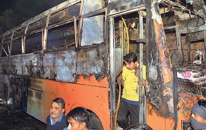 गूगल मैप भटकाकर मौत के रास्ते ले गया / जालोर के महेशपुरा में बिजली के तारों से बस में लगी आग, छह लोग जिंदा जल गए, 36 झुलसे