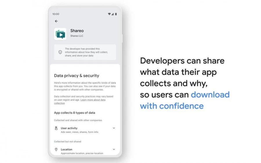आज Google ने शेयर किया कि उनका नया सेफ्टी सेक्शन कैसा दिख सकता है। शुरुआती डिजाइनों से पता चलता है कि यह काफी हद तक Apple के जैसा होगा। फीचर की घोषणा करते हुए Google ने एक ब्लॉग में कहा कि आज हम Google Play में आगामी सुरक्षा अनुभाग के लिए अतिरिक्त विवरण की घोषणा कर रहे हैं। यह उपयोगकर्ताओं को उनके डेटा पर नियंत्रण प्रदान करता हैं। यह नया सेफ्टी सेक्शन डेवलपर्स को अपने ऐप की सारी सुरक्षा दिखाने का एक आसान तरीका मुहैया करेगा।