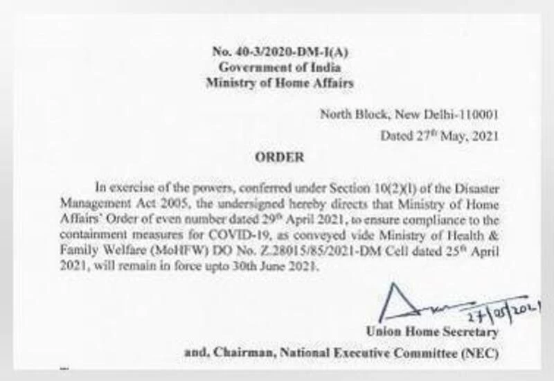 केंद्रीय गृह सचिव अजय भल्ला के आदेश में कहा गया है कि कन्टेनमेंट और अन्य उपायों के सख्त कार्यान्वयन से दक्षिणी और उत्तर-पूर्वी क्षेत्रों में कुछ इलाकों को छोड़कर अन्य राज्यों और केंद्र शासित प्रदेशों में नए और सक्रिय मामलों की संख्या में गिरावट आई है। आदेश में कहा गया है कि गिरावट के बावजूद, वर्तमान में सक्रिय मामलों की संख्या अभी भी बहुत अधिक है। इसलिए, यह महत्वपूर्ण है कि रोकथाम के उपायों को सख्ती से लागू किया जाना जारी रखा जाए।