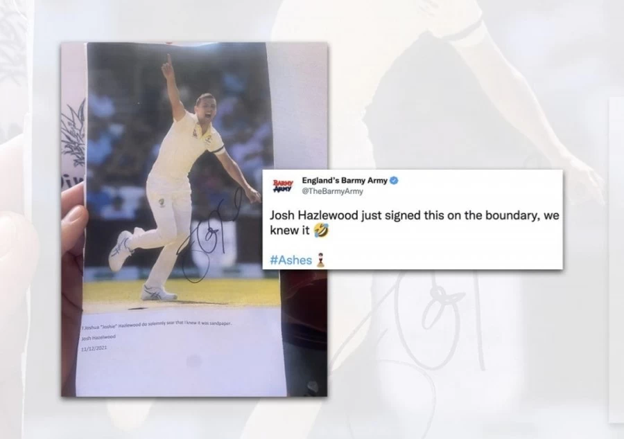 मैच के चौथे दिन बार्मी आर्मी के एक सदस्य ने हेजलवुड से ऑटोग्राफ लिया। हालांकि, दाएं हाथ के तेज गेंदबाज ने जिस पेपर पर अपना ऑटोग्राफ दिया उसके ऊपर जो कुछ भी लिखा था वो पढ़ नहीं पाए और साइन कर दिया। दरअसल जोश हेजलवुड ने जहां अपने ऑटोग्राफ दिया उस पर लिखा था, “मैं जोश हेजलवुड ये कसम खाता हूं कि मुझे पता था कि वो एक सैंडपेपर था।”