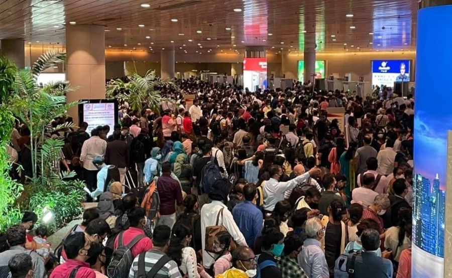 मुंबई: मुंबई में एयरपोर्ट पर आज सुबह भारी भीड़ देखने को मिली, जिसके चलते कई लोगों की उड़ानें छूट गई। लोगों ने खराब व्यवस्था को इसका जिम्मेदार ठहराया, क्योंकि लोग काफी देर तक लंबी लाइनों में फंसे रहे। विशाल डडलानी जैसी बड़ी हस्तियों ने सोशल मीडिया के जरिए एयरपोर्ट का हाल बयां किया। तस्वीरों में लोगों को लंबी लाइनों में खड़ा देखा गया। इंडी गो ने यात्रियों को सुरक्षा जांच के लिए पर्याप्त समय देने के लिए, एयरपोर्ट पर जल्दी रिपोर्ट करने की सलाह दी।