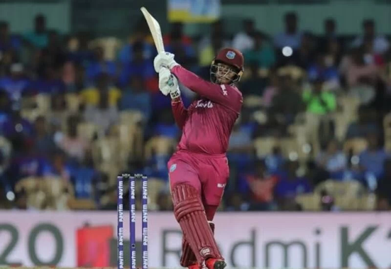 लक्ष्य का पीछा करते हुए वेस्टइंडीज को पहला झटका जल्दी लगा जब सुनील एम्ब्रिस नौ रन बनाकर दीपक चाहर का शिकार बने। इसके बाद दोनों बल्लेबाजों ने जबरदस्ती साझेदारी निभाते हुए 200 से ज्यादा रन जोड़े। अपनी शतकीय पारी में हेटमायर ने 11 चौके और सात गगनचुंबी छक्के लगाए। इसमें एक छक्का तो उन्होंने इतना लंबा लगाया कि गेंद सीधे स्टेडियम के बाहर चली गई। इस छक्के ने 102 मीटर की दूरी तय की।