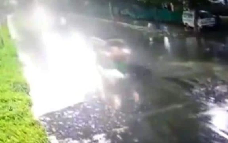 #WATCH | Hyderabad: Overspeeding luxury car hits auto from behind on the rain-drenched road near Cyberabad's Inorbit Mall on June 27. A passenger riding in the auto was killed in the incident. pic.twitter.com/o3qpdEk0pp