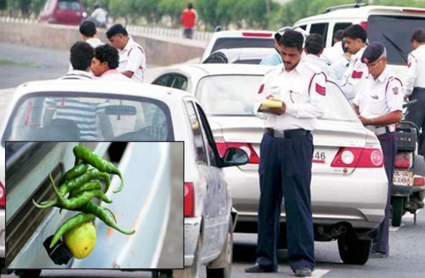 बुरी नजर से बचने के लिए वाहनों पर नींबू-मिर्ची, काला रिबन या अन्य चीजें लटकाने वालों के खिलाफ Traffic Police ने शुरू किया अभियान।