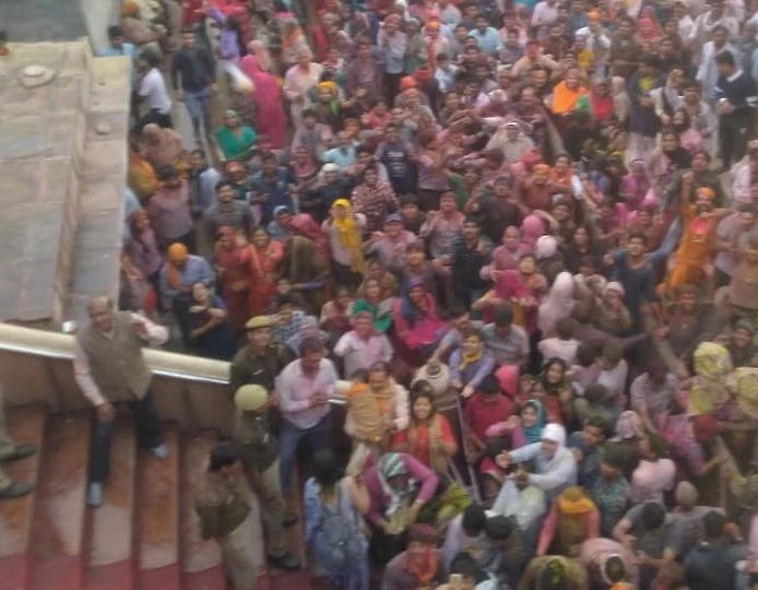 दोपहर बाद करीब तीन बजे से ही श्रद्धालुओं का रेला श्रीजी मंदिर में उमड़ने लगा था। राधारानी के दर्शनों के लिए श्रद्धालु व्याकुल हो रहे थे, जैसे ही शाम के चार बजते ही पट खुले और लड्डू की होली शुरू हुई। श्रद्धालु बोल उठो होरी खेले तो आइ जइयो बरसाने रसिया..., कान्हा तोईऐ बुलाय गई नथवारी, ओ कान्हा...। भक्तों ने श्री जी के दर्शन कर उन्हें गुलाल और लड्डू अर्पित किए। गोस्वामी गायन में जुटे थे। नंदगांव कौ पाड़ौ ब्रज बरसाने आयो, होरी कौ पकवान भर भर झोरी खायौ... पद का गायन हुआ। प्रसाद रूपी लड्डू को लूटने के लिए असंख्य हाथ ऊपर उठे दिखाई दिए। युवक, बालक, वृद्ध, महिलाएं सभी झोली फैलाए लड्डू पाने की होड़ में थे। सुबह से ही बरसाने में देश के अन्य राज्यों से श्रद्धालु भक्तों का उमड़ना शुरू हो गया यह सिलसिला दोपहर तक जारी रहा।